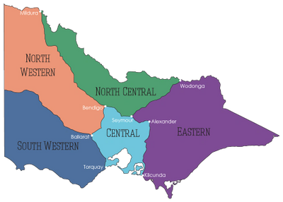 Including areas like Ararat, Ballarat, Bendigo, Colac, Camperdown, Castlemaine, Creswick, Daylesford, Dimboola, Donald, Halls Gap, Horsham, Hamilton, Lake Bolac, Maldon, Moyston, Melbourne, Mortlake, St Arnaud, Stawell, Warrnambool and many more.